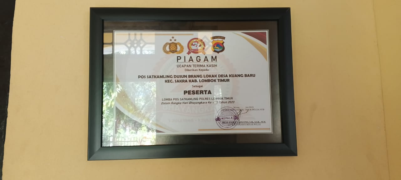 Kuang Baru – Pos Keamanan Lingkungan (Kamling) jajaran Polres Lombok Timur, berhasil meraih juara dalam perlombaan Sistem Kemanan Lingkungan (Siskamling) tingkat Polres Lombok Timur dalam rangka Hut Bhayangkara ke-77.
